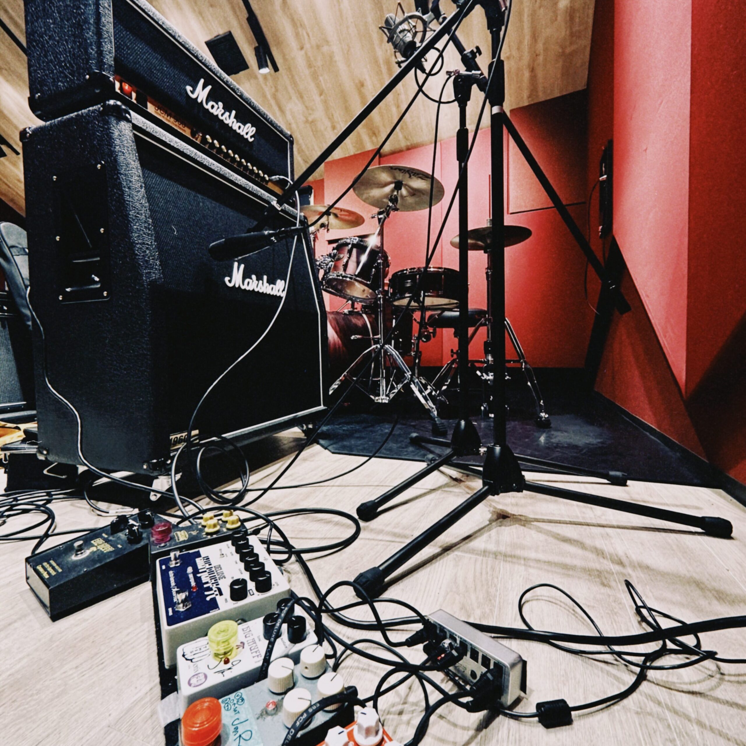スタジオ4時間でマイク立ててドラムとベースを録音した前回に続き、深夜4時間の個人練習でギターを録音してきました。