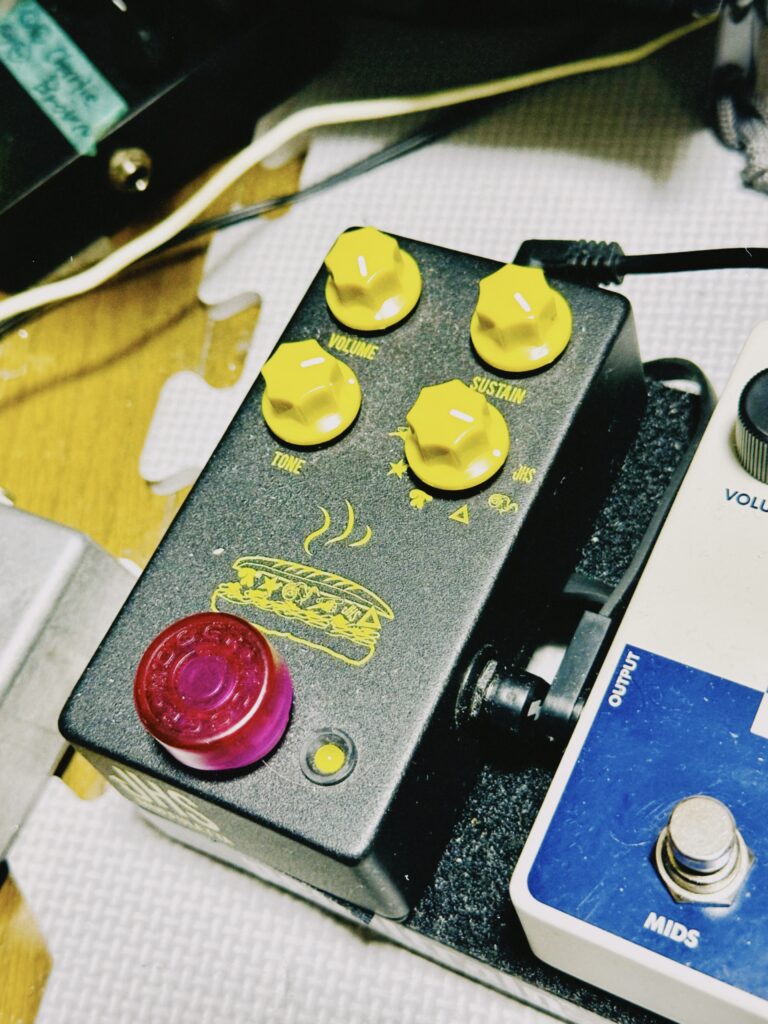 黒いのがJHS PedalsのMuffuletta。いろんな時代のビッグマフをアナログ回路で再現したという優等生。JHS独自解釈とされるオリジナルビッグマフモードが、ヘッドルーム豊かでギターソロにしっくり。